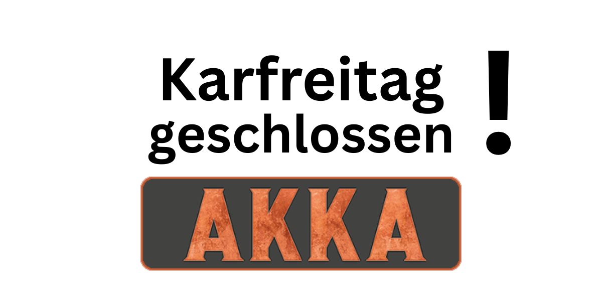 Am Karfreitag bleibt die AKKA zu. Am Ostersamstag sehen wir uns alle bei Sally und Rob wieder.