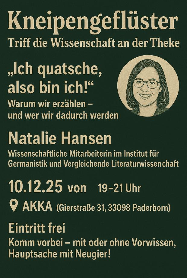 Kneipengeflüster diesmal mit dem Thema: ' Ich quatsche, also bin ich' Warum wir erzählen - und wer wir dadurch werden